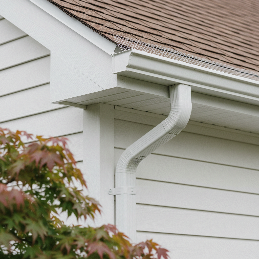 Seamless aluminum gutters cut on-site. Micro-mesh and solid-cover guards. Repair on storm-damaged runs. Installable with a roof or on its own.